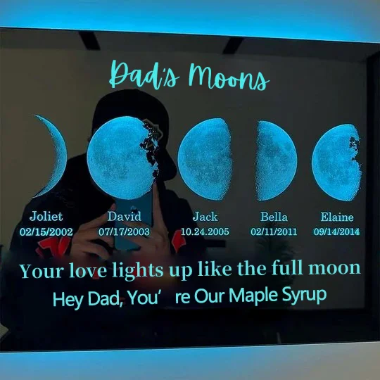 Father's Day🌈Custom Led Mirror Light Frame with text and date🌖dad's universe🌔